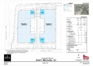 The I-5@Tustin Ranch Freeway Center project is a planned redevelopment of an 8-acre industrially zoned site at 2441 Michelle Drive in the City of Tustin. The property uniquely enjoys 560 lineal feet of Interstate I-5 freeway frontage at Tustin Ranch Road. When completed in Q4 2027, the facilities will feature 36' minimum warehouse ceiling clearance, 3,000 amps of 277/480v power, with each building offering 11 dock high loading doors, 2 ramps to grade and 8,000 sq. ft. of 2-story office improvements.